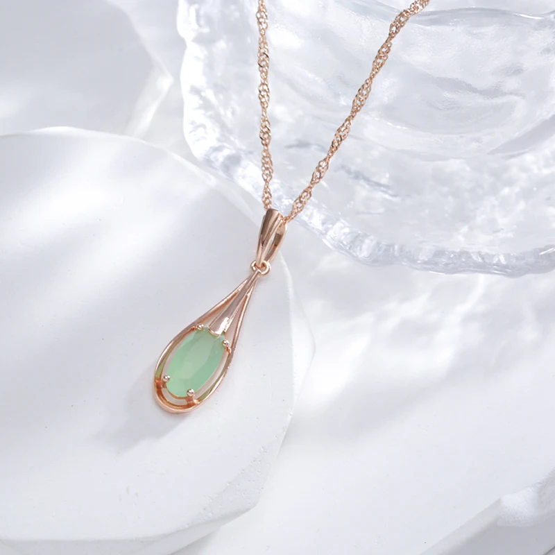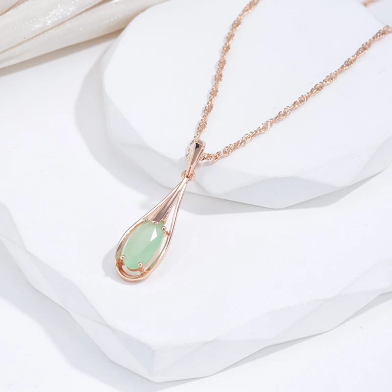 Green Emerald Natural Zircon Drop Pendant Necklace